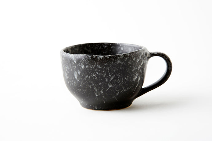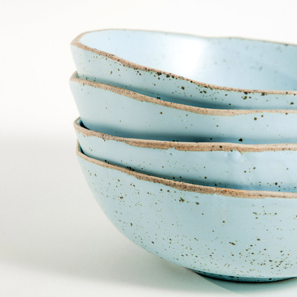 Formed with flecked clay and finished in a clear matte glaze, the Soda Collection's dotted texture recreates the mesmerizing asymmetry of tiny rising bubbles. Our unique matte finish harmonizes with the smooth clay body in order to create a completely unique tactile experience for every piece.