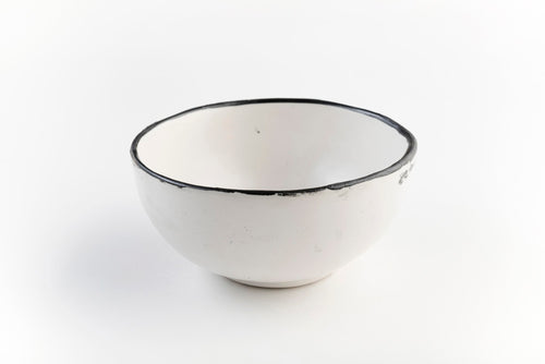 The black edge emphasizes the shape of the items. The matte glaze satin white glaze both inside and outside the piece. Simplicity and clean lines make this collection a masterpiece of timeless design.