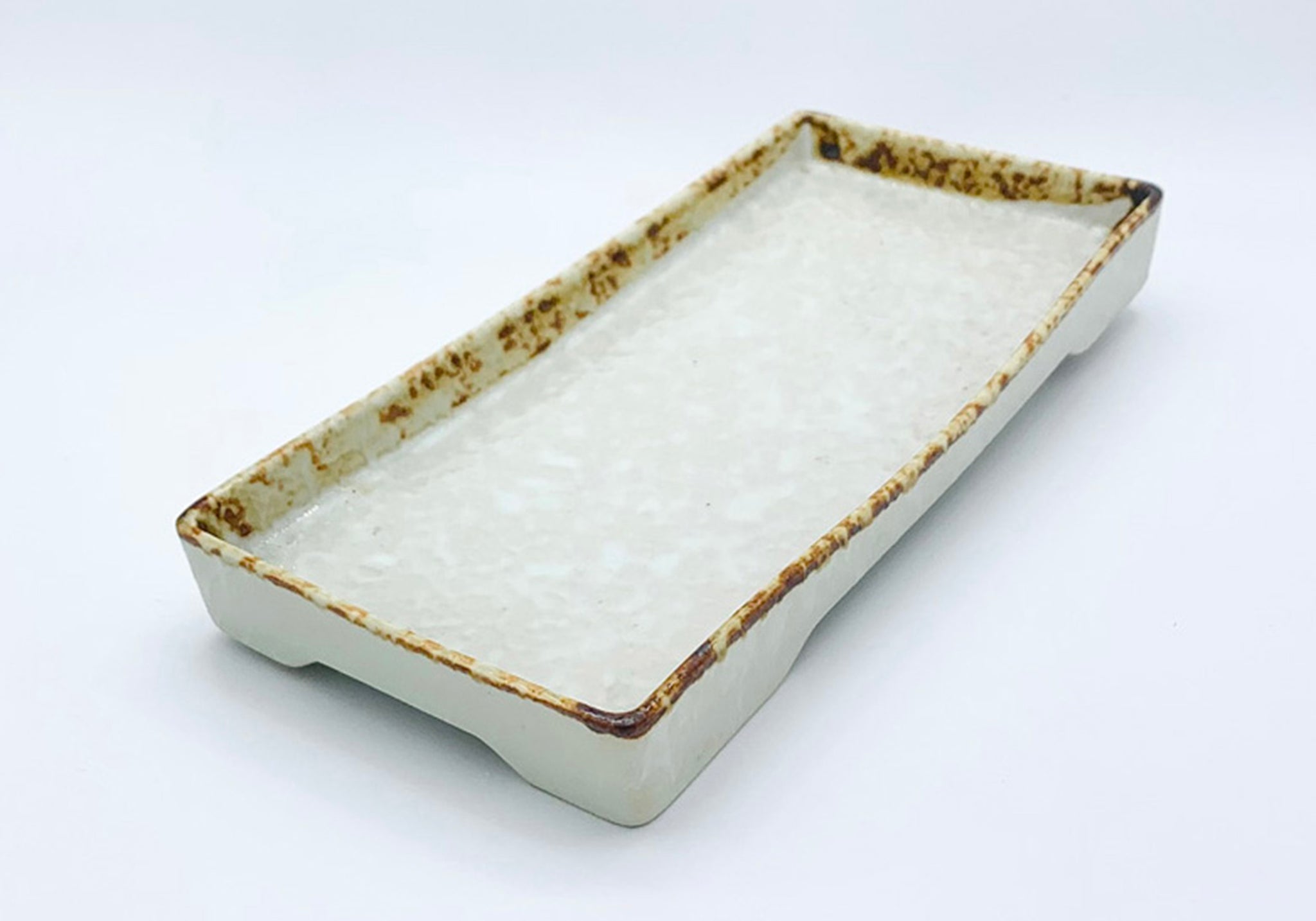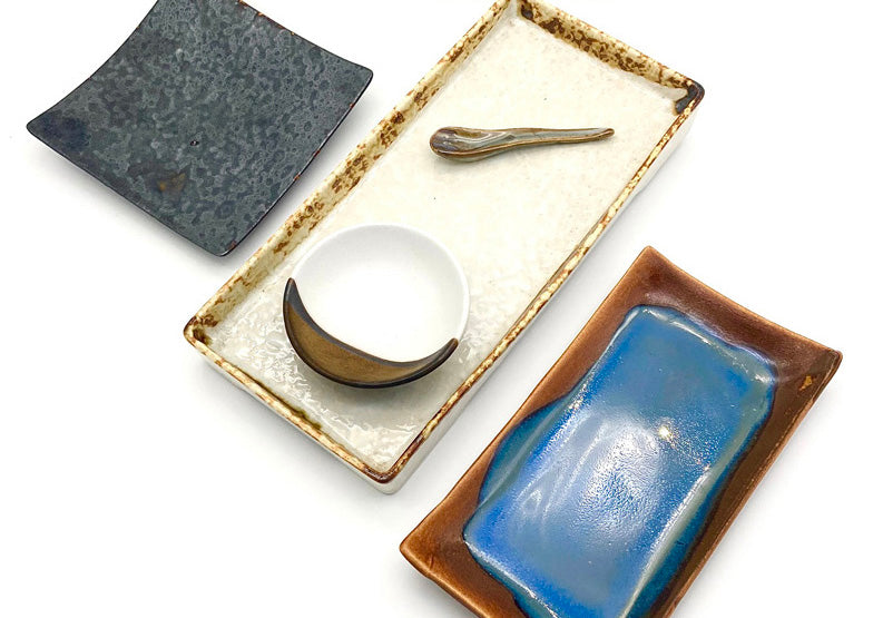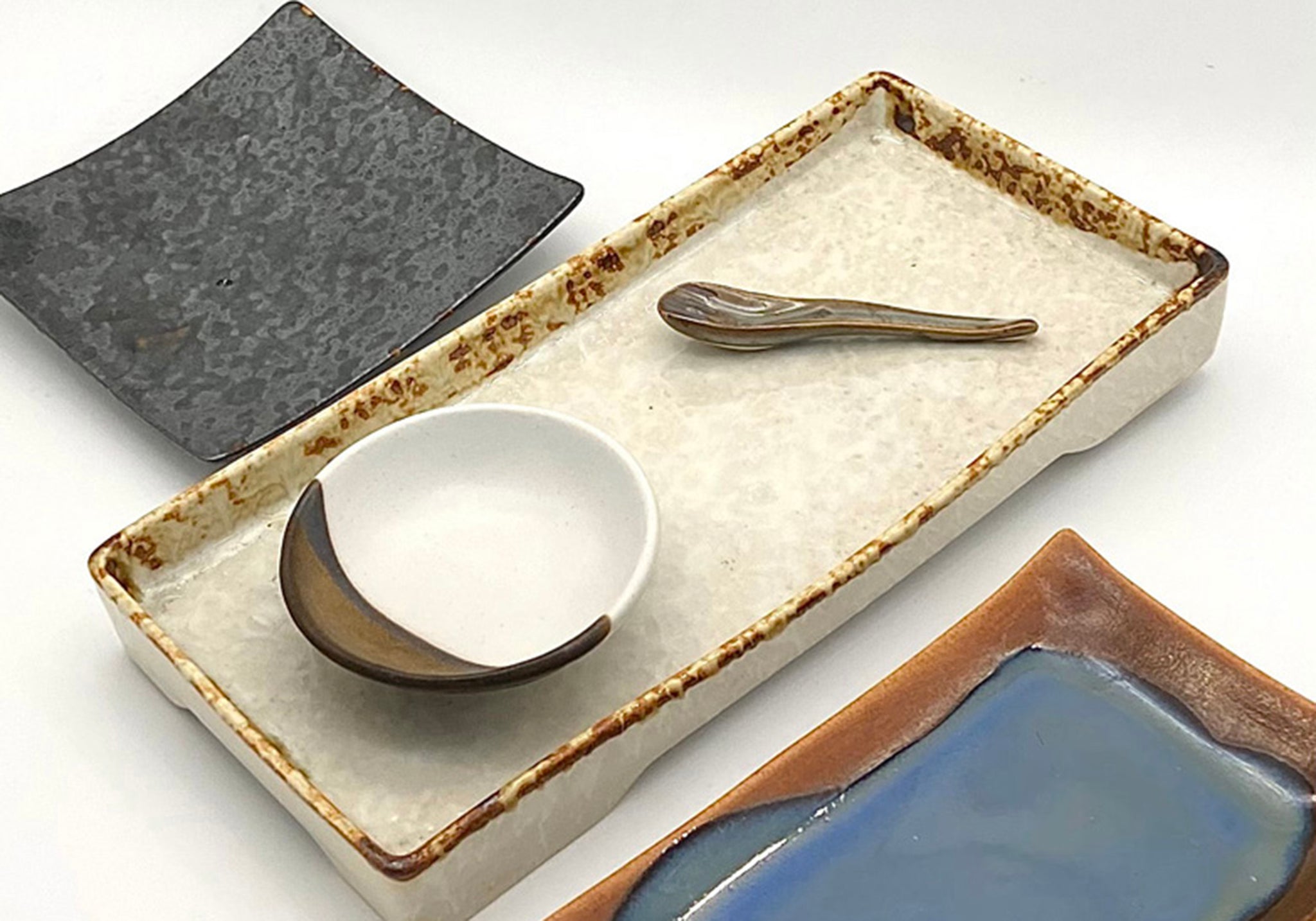 The signature item, our sushi plates, comes in a wide range of sizes. It works for cheese plates, tartar with bread, or even dessert dishes. It comes with freeform, flat, or hamper textures. We hope you can embrace the imperfection as part of the charm of the items. 25.5 cm, 12.3 cm, 3.0 cm