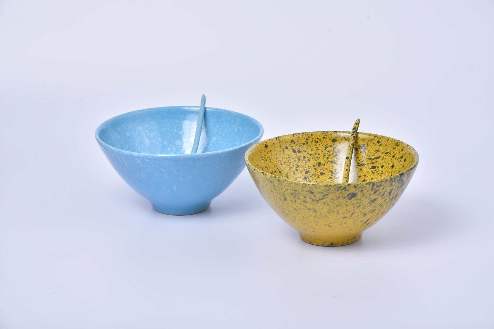 Rice bowl with a pointed bottom and a narrow base, inspired by the classic Japanese rice bowl, diameter 8 inches (20 centimeters), available in 5 colors. It is microwave-safe and dishwasher-safe, and can be stacked